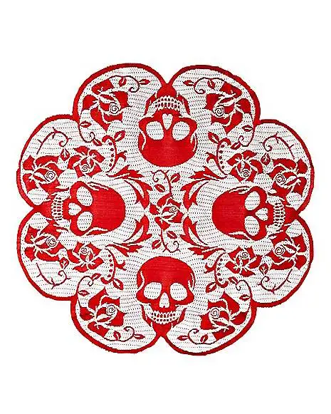 Top your table with this spooky gothic centerpiece! Featuring red skulls and roses, and available exclusively at Spirit Halloween, this piece will make a delightfully deadly addition to any table setting.