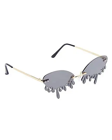 Rock a surreal style with these drip sunglasses. Narrow black lenses are designed to create a dripping effect, with sleek metallic hardware holding them in place. Groovy!