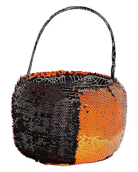 Add a little shine to your Halloween look! This reversible sequin plush treat bucket is the perfect way to make sure you shine all night long.